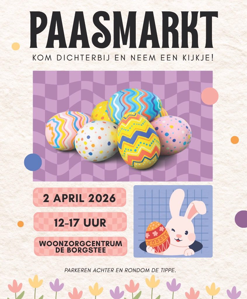Kom langs voor een gezellige middag! Op 2 april van 12:00 tot 17:00 uur bent u van harte welkom bij woonzorgcentrum De Borgstee in Vledder voor een sfeervolle Paasmarkt. De markt staat in het teken van gezelligheid en ontmoeting, met als ...